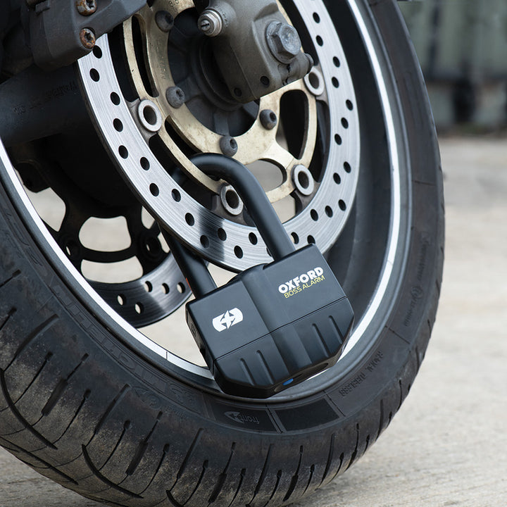 Oxford Boss Alarm je Oxfordova najjača brava ikad; Dizajniran za davanje Maksimalna zaštita od krađe. S jednim 16 mm otvrdnuti skakač I jedan zaglušujući signal alarma od 100 dB, alarm se aktivira tijekom kretanja i izravno odvrati lopove. Brava se također može koristiti bez aktiviranja alarma, što ga čini fleksibilnim za različite namjene.