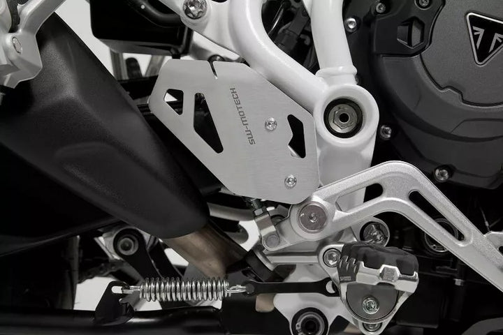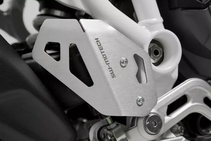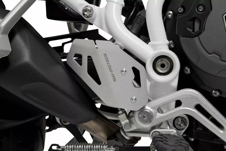 Čuvar rezervoara kompaktne kočnice štiti originalni rezervoar kočnice od kamenih čipsa i istovremeno sprječava neželjeno uklanjanje poklopca. Zaštitnik se može ugraditi na motocikl u nekoliko jednostavnih koraka, izrađen od aluminija debljine 2 mm, visokokvalitetnog dizajna i izrada, štiti izvorni rezervoar kočnice od kamenih čipsa, sprječava neželjeno uklanjanje poklopca, uključujući isporuku u isporuci
