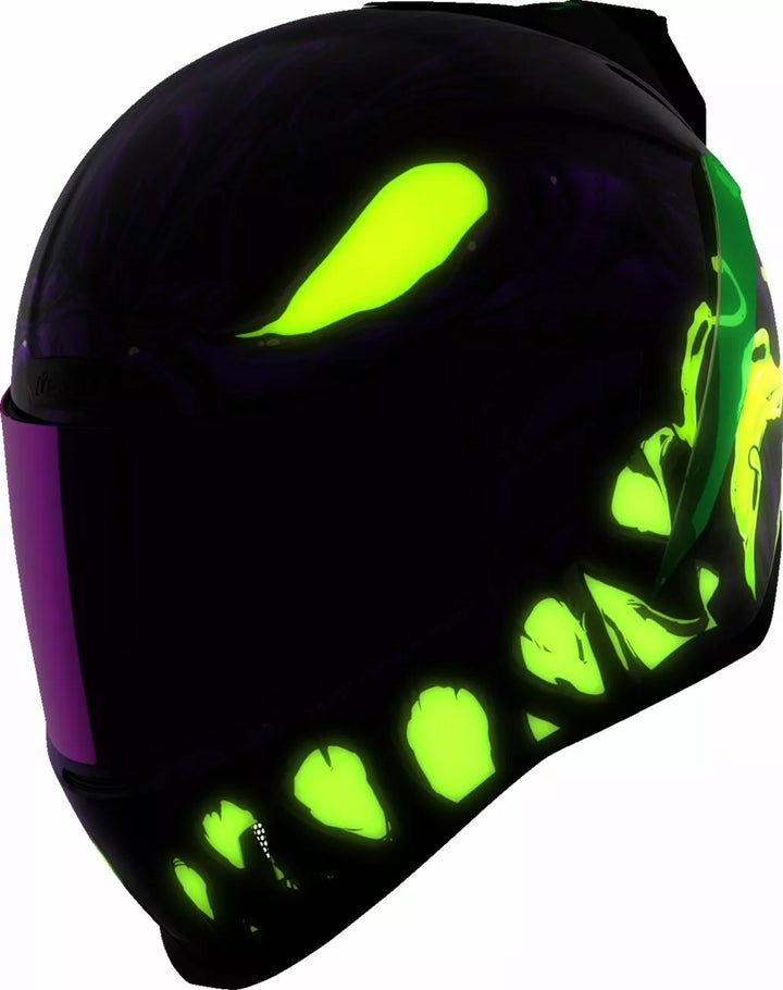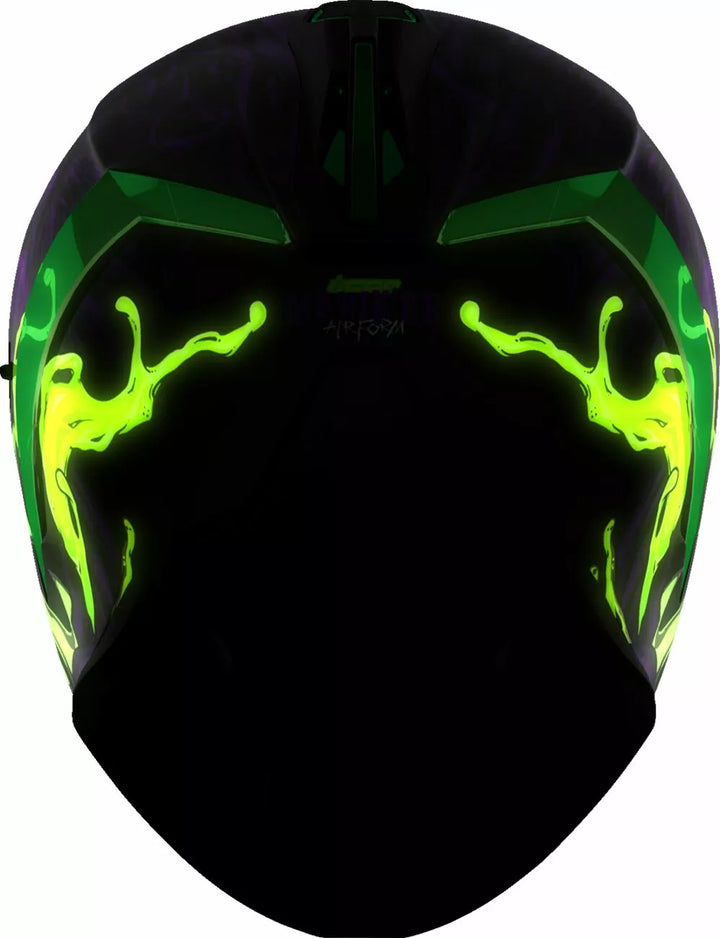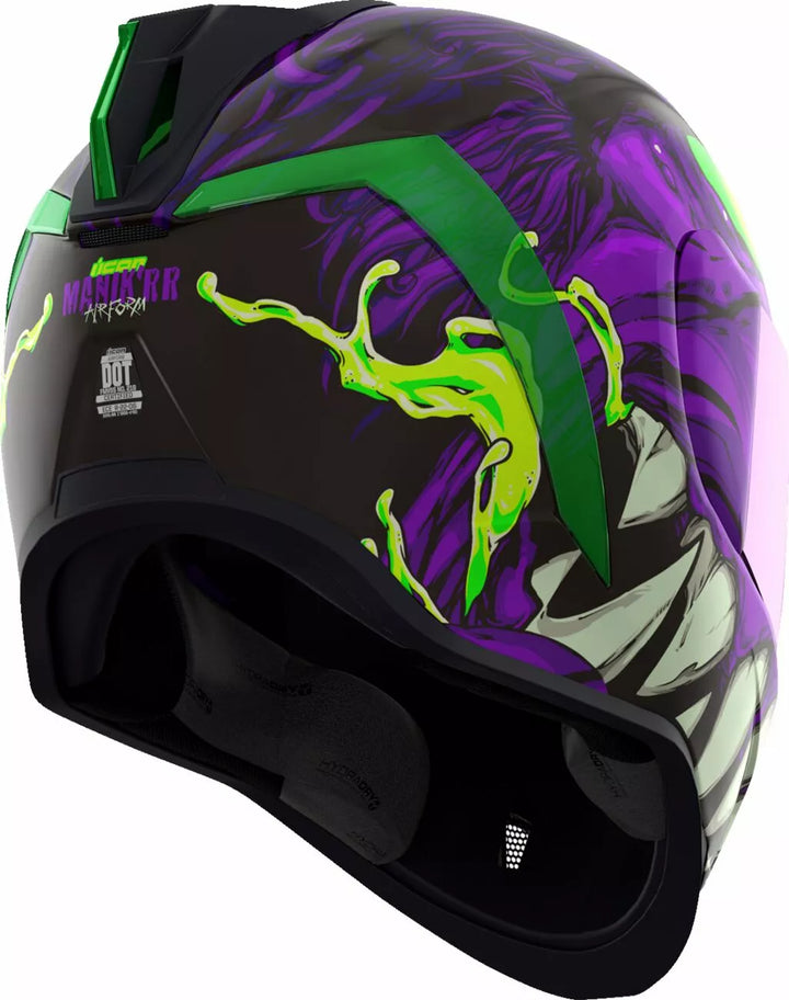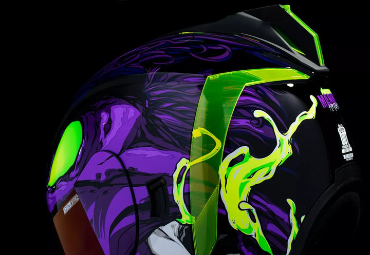 Nuolatinė ventiliacijos sistema, be fago „Icon Optics ™“ skydas su „Rapid-Release ™“ sistema, įpurškimo suformuotas polikarbonato apvalkalas, skirtas stiprumui Linerio, vidinės garsiakalbių kišenės veikia su „Icon's R.A.U.“. „Bluetooth“ įrenginys, apima „Dark Smoke Dropshield ™“ ir „Rubatone Black Speedfin ™“