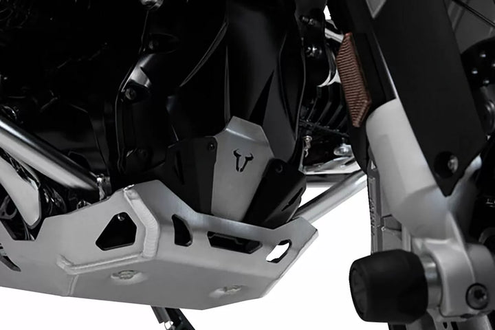 Apsaugo priekinį variklio bloko plotą nuo uolų drožlių, ištiesia variklio apsaugą priešais variklio bloką iki 130 mm, galima montuoti ant savo arba be „SW-Motech“ variklio apsaugos, joje yra montavimo aparatūra ir instrukcijos