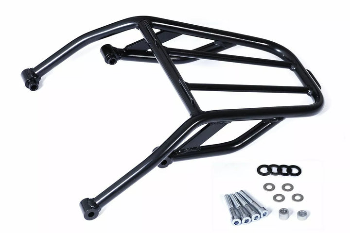 Vamzdžių rėmo bagažo lentynos montavimas už sėdynės, papildomos pririškimo akys, pritvirtinti minkštą lagaminą ir kt.