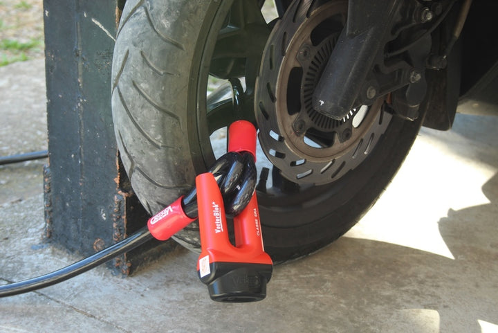 „Vector Max Cable“ yra a Stiprus ir lygus vielos užraktas, puikiai tinka motociklų, dviračių, valčių ar kitų didesnių daiktų apsauginimui. Su vienu 9 metrų ilgio pintos plieno kabeliai ir vinilo danga tu gauni Aukštas saugumas kartu su apsauga nuo įbrėžimų ir nusidėvėjimo.