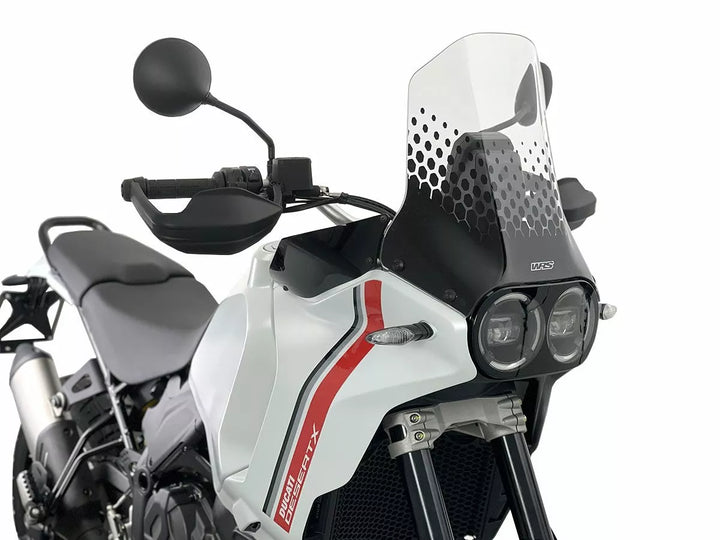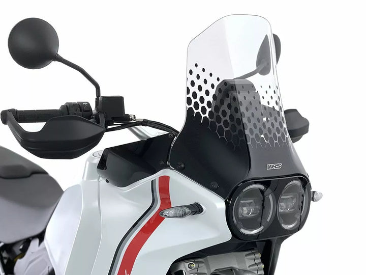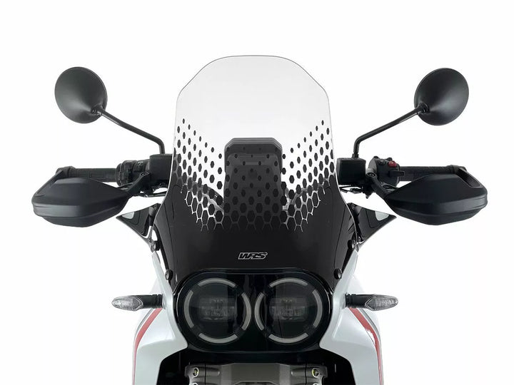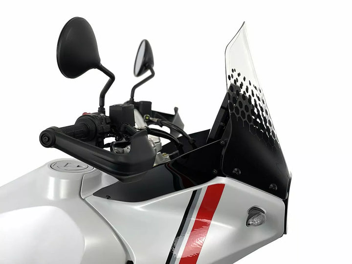 Priekinio stiklo ekranas, pagamintas naudojant aukštos kokybės „PMMA Plexiglass“, bus pašalinta erzinanti turbulencija ant pečių ir šalmo, tuo didesnė ekrano apsauga, suteikianti didesnę apsaugą, suteikianti dviračio liniją, suteikiant jai dar daugiau programos.