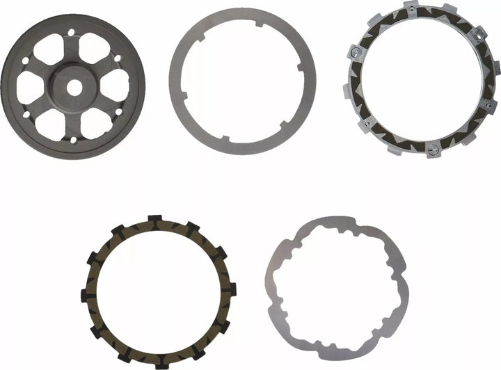 Atjaunināts paplašinošs berzes disks) montāža, bāzes materiāls, kas atjaunināts, lai nodrošinātu labāku vidi augstā temperatūrā, kritiski, lai izveidotu siltuma sajūga sistēmas, iekšējās sienas pamatnes, kas tiek pārveidotas pēc izturības un braucēja, kas transtransteratē disku, berzes spilventiņi, kas tagad atbilst patentētai brīvas berzes dizainam, kas atrodams reklāmā Torqdrrive Clight Perlates, kas nodrošina naftas plūsmu. Iebūvētas tapas, ritošās tapas pret slīdēšanu rada mazāku berzi un pretestību, nodrošinot vienmērīgāku iesaisti un atsaucīgāku sajūtu, radot spēcīgāku enerģijas piegādi kopumā, tiešāku enerģijas padevi, uzlabotu izturību un braukšanas fokusu atbilst modernām motocikla motora īpašībām, vairāk skaņošanas iespējām ar mainīgu ķīļa svaru un exppring.