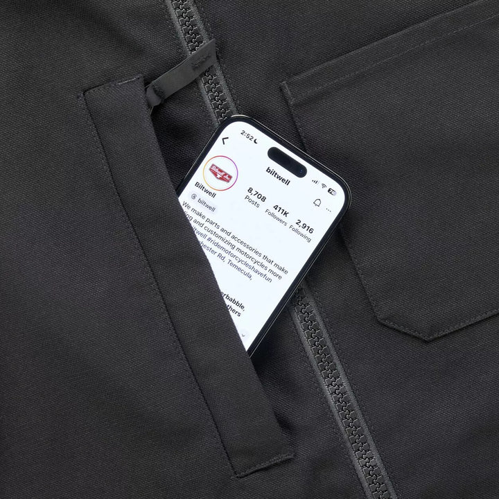 Smagas 13 unces, 100% kokvilnas audekla ārpuse., 3 collu plati audekla akordeona sānu paneļi ar stiepjošu neilona/elastāna konstrukciju., Vislon divvirzienu laika apstākļu necaurlaidīgs rāvējslēdzējs ar augstas vilces hipalona vilkšanu. Stūra pastiprinājumi., Pārmērīga slēptā kabata labajā krūtīs ir 8 collu vertikāls rāvējslēdzējs un viena plākstera kabata uz kreisās krūtīm. 57% poliestera/ 43% pārstrādāts pārstrādāts interjera oderējums ar sublimētu grafiku. , Vienas vajadzības, dubultās un pārmērīgas bloķētas poliestera šuves visā., Izšūti interjera tagi un ārējā zīmola detaļas. , ES: grūts 368,54 gsm, 100% kokvilnas audekla ārpuse., Eu: 7,62 cm plats audekla akordeona sānu paneļi ar stiepuma neilona/elastāna konstrukciju., Eu: Pārmērīga slēptā kabata labajā krūtīs ir 20,32 cm vertikālā rāvējslēdzēja vertikālā zipa zibējošā zipa zipa vertikālā zipa vertikālā zipa vertikālā zipa vertikālā ziper ziberzipippiper ziper ziper ziper ziber ziber ziber ziber zibējējs.