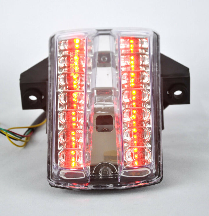 Caurspīdīgais objektīvs glīti saplūst pilskalnā, un jūs saņemat abus aizmugurējo lukturu un bremžu lukturi ar e-apstiprinājumuApvidū Ievērojiet to Integrētie Blinkersen nav apstiprināti ceļu izmantošanai, kas padara šo lampu ideālu Kustības sastāvdaļa, dziesmu dienas vai izstāde Whois.
