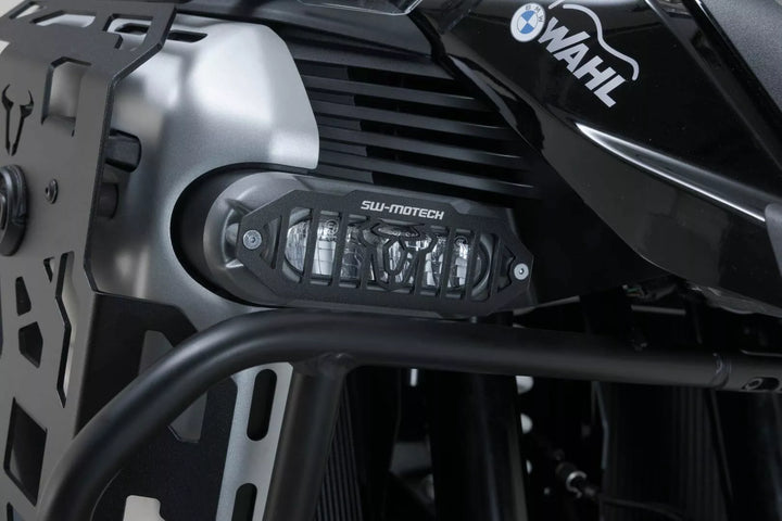 Tērauda aizsardzības režģis aizsargā papildu lukturus no grants un svešķermeņiem. , Priekšējo lukturu aizsargu var uzstādīt uz oriģinālā kronšteina tikai dažos soļos., Iekļauts piegādes laikā, 1 x priekšējo lukturu aizsargs ar aizsardzību, montāžas instrukcijas, montāžas materiāls