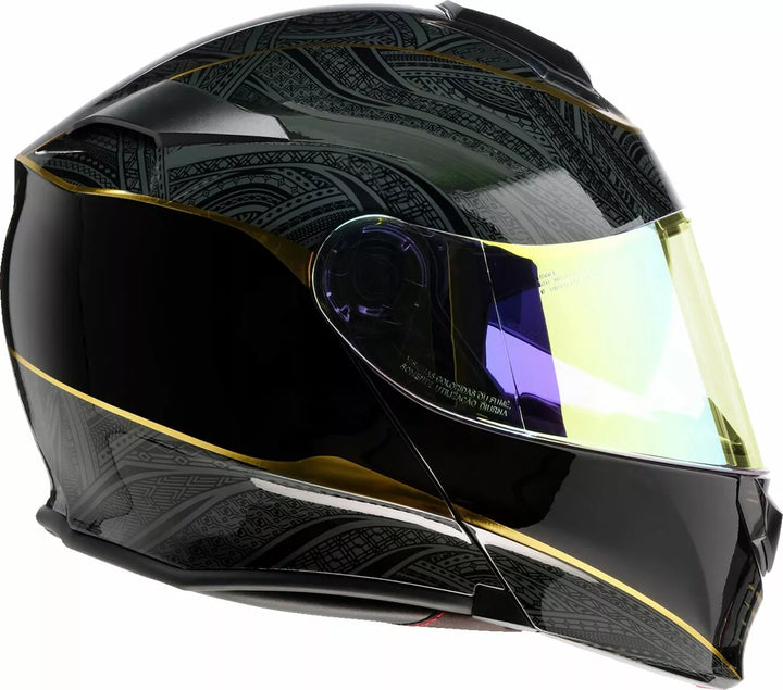 Pilnībā noņemams, mitruma taisns poliestera ķiveres oderējums un vaigu spilventiņi, aizvērts zods un augšējās atveres, kā arī aizmugures izplūdes ventilācijas atļaujas palielināt gaisa plūsmu, iesmidzinātu polikarbonāta apvalku, viegli noņemams, piliens no piliena pilināšanas piliens piliens piliens piliens piliens. Viegli darboties, izmantojot uz sāniem piestiprinātas aknas, ausu kabatas skaļruņiem, ietver pirmo zelta vairogu