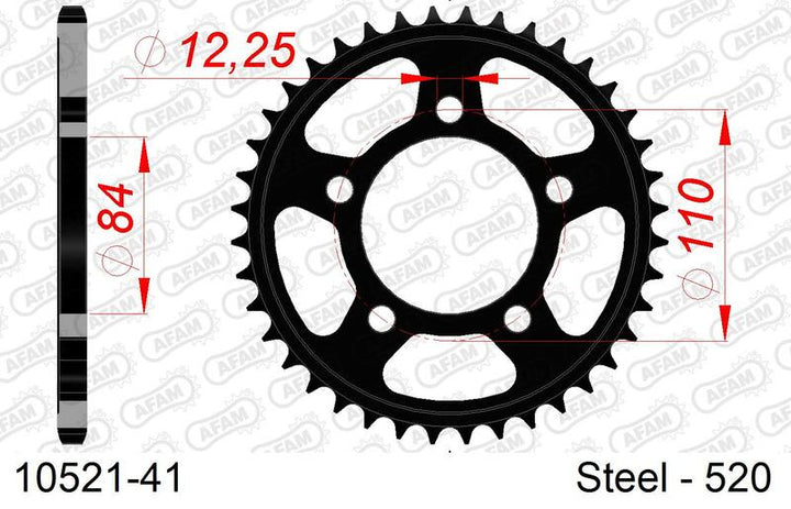 Afam Steel Rear Pro's are Machined From C45 Steel, and are then Treated to Higher Hardness and Even Resistance. The High-Quality Manufacturing Process and the Cutting Precision Made AFAM A World Leader for Motorcycle Transmission Parts. Steel rear Sprockettop of Range Manufacturing and QualityContributes to Transmission Kit Durability Chain_pitch: 520.0 Material: Steel rear_prolet_teeth_count: 41.0 REAR_PROET_TYPE: