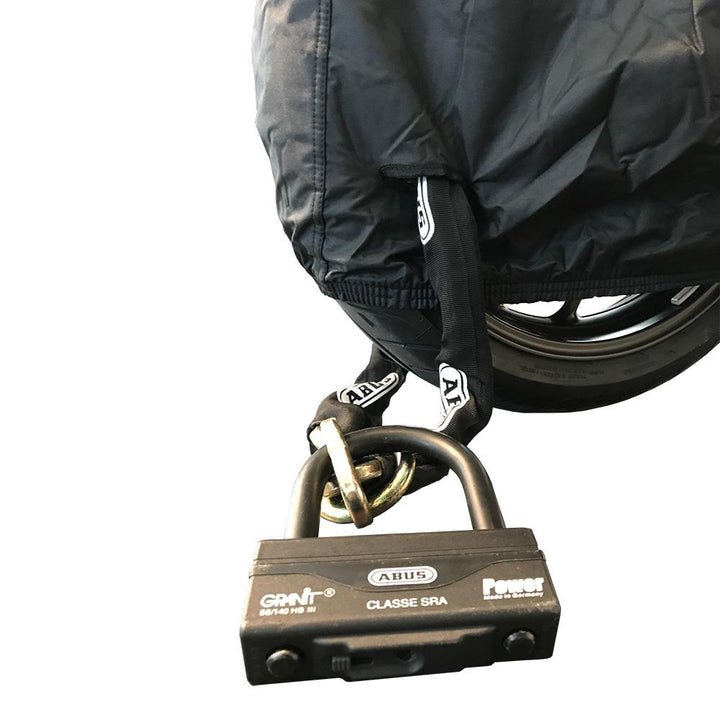 Alfa Motorcycle Cover Color: Black size: M. Dimensions Length: 203 cm Width: 89 cm Height: 120 cm