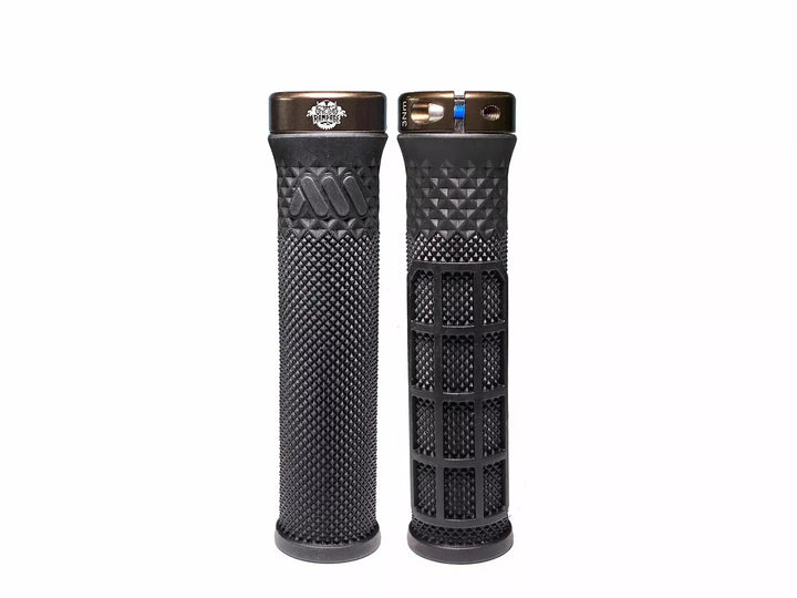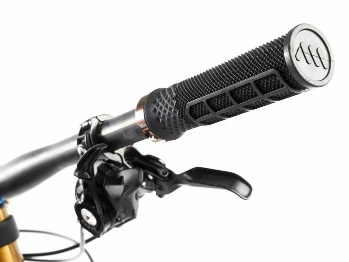 The Biggest, Most Radical Freeride Mountain Biking Event and AMS Join Forces for this limited edition grip., AMS X Red Bull Rampage Cero Grips in Black With a Bronze Collar. Do you dare?, Red Bull® Marks and the Red Bull® Rampage Logo Are Licensed by Red Bull® GmbH/Austria., Dual Pattern, Dual Density., Big Inward Diamonds at the Thumb, Smaller and Outward Diamonds with Waffle Style at the Center GRIP WHY GRIP WHAT GRIP WHAT GRIP WITH WITH WITH WITH WITH WITH WITH WITH WITH WITH WITH WITH WITH WITH WITHING HIGHING HIGS , Locking is Provided with a single Inside Collar., The pair are just under 100 grams. , Subtle flake at the end. , Designed by the Team of Cero Design under The Lead of Cesar Rojo., Bronze Coloured Red Bull® Rampage Collar., 132mm Total Length., 30mm Constant Diameter., Constant Thickness., 94 Grams (3.46 ounces).