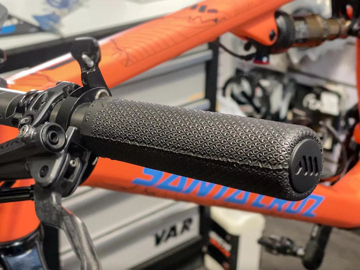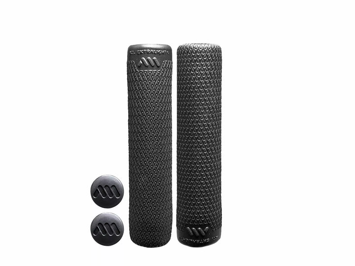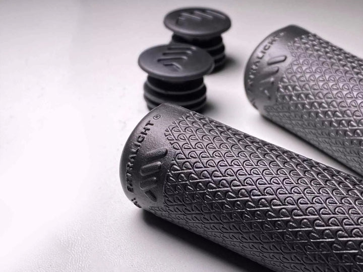 Extreme Light Foam Grips. Less Than 1/3 of the Leading Foam Grips in the Market., Tesla Valve Texture for Better Grip in Humid and Sweaty Conditions. , Soft and Super Comfortable. , 130mm Total Length., 30mm external installed diameter. , 18 grams (0.6 ounces) per pair. 24 Grams (0.8 ounces) Including end caps., Tight fit. Install with Hair Spray., Made in the EU.