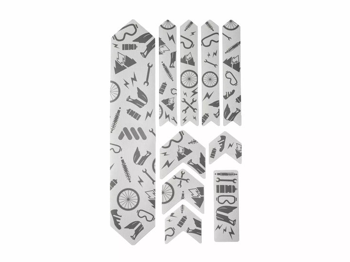 The AMS Honeycomb Frame Guard Protects Bike Frames From Impacts, Scratches and Cable Rubbing., It's Made of An Exclusive, Super Easy to Install, Honeycomb Adhesive PVC With Such a Quality That Will Last Longer Than Your Bike. Micron's semi-rigid PVC., Automotive-grade materials. Won't Yellow Over Time., Minimum Weight (28 Grams / 0.98 Ounces)., Scope of Delivery: 10 Parts for A Universal Protection System: 1 Big Part for the Down Tube; 4 Arrow Parts for Extending the Down Tube Protection or Top Tube, 4 Parts for the Chainstay; 1 Rectangle for Cable Wear Protection or Other uses., This Product is Designed and Produced in Barcelona by Riders, for Riders!