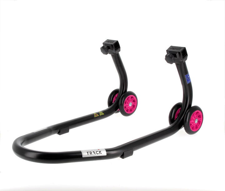 Bihr Home Track New Paddock Stands Are Developed In Partnership with Indespro, Spanish Manufacturer. Stand tubes in Ø 35mm Steel4 Ø 110mm Wheelsmat Black PowderCoated PaintMetal Effect Stings Delivered with Protection Pack Adapters Are To Order Separately Color: Black & Pink Maximum LOAD KG: 250.0