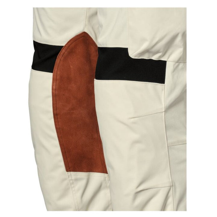 The pants have NP3 protection at the knees and hips as well as heat insulating reinforcement at leg end For extra security. For best grip on tank and saddle, the inside of the legs is provided with Genuine leather panels - An exclusive detail that both improves control and provides an elegant touch.