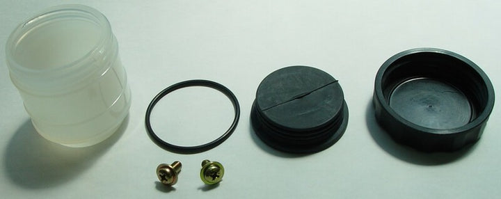 Use this master cylinder tank repair kit to recondition this braking component and renovate its seal. It Compresses: 1 Round Tank1 Cover1 Diaphragm1 O-Ring 2 Screws Color: White Position: Front