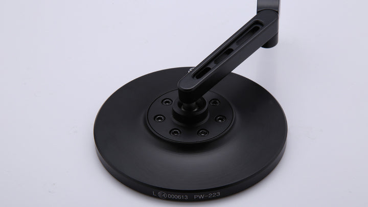 The mirror is CNC processed and has a rounded head in black matte anodized aluminum. The mirror arm is equipped with three stylish air slits and a hinge on the clamp provides extra adjustment possibilities to ensure optimal visibility.