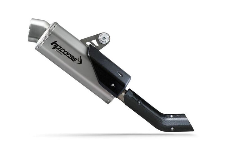 Purity of Design, 4-Track R Whith DBK is Dedicated to the Maxi Enduro, The Sport Touring/Adventure and Crossover of Last Generation, The New 4-Track R Discharger Loves The Thrill of the Great Spaces and the Roads That Go Beyond The Horizon. Designed in the R&D Center of Bologna, The New Hp Corse Creature is Born Strong, Able to Withstand The Most Demanding Situations and to the Many Ridden to Accompany Motorcyclists through the roads and paths, Mountain Steps, Deserts All Over the World. Tested for more than a year on the bench and on the most demanding routes, the new hp corrse exhaust assures religibility and improved performance than all the original mufflers that replaces in particular way the low and midrange regime. Hp Corse 4-Track R is light, it has an octagonal shaped bottom, it has an hydroformed spout and a silencer body with a laser engraveed logo. Available in Three Different Materials: Titanium, Satin Steel, and Ceramic Black Stainless.