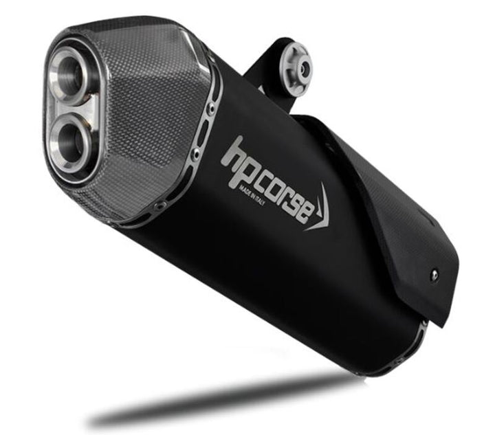 Purity of Design. Dedicated to the Maxi Enduro, The Sport Touring / Adventure and Crossover of Last Generation, The New SPS-Carbon Discharger Loves The Thrill of the Great Spaces and the Roads That Go Beyond The Horizon. Designed in the R&D Center of Bologna, The New Hp Corse Creature is Born Strong, Able to Withstand The Most Demanding Situations and to the Many Ridden to Accompany Motorcyclists through the roads and paths, Mountain Steps, Deserts All Over the World. Tested for more than a year on the dyno bench and on the most demanding routes, the new hp corrse exhaust assures reiability and improved performance than all the original dischargers that replaces in particular way the low and midranke regime. Hp Corse SPS Carbon Whith DBK is light, it has an octagonal shaped bottom, it has a carbon fiber end-cap and a silencer body with a laser engrave logo, available in three different materials: titanium, satin steel, and cer Ceer Cer Cer Cer Cer Cer Cer Cer Cer Cer Ceramic.