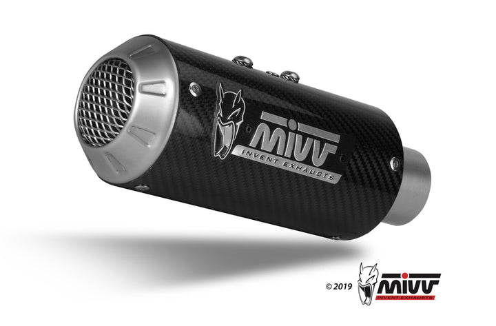 The MK3 Line, Resulting from the Experience Acquired in Moto3 and Moto2 World Championships, is the perfect synthesis between performance and technology. With a design Similar to the Exhausts Made for MotoGP, The MK3 is a Compact Product, Capable of Release the Captivating MIVV Sound. Compact size aggressive look Aims to Improve Engine Performance Laser-Marked MIVV Logo Protective Grid On The Exit Bottom Muffler Finish: Carbon Pipes Finish: Stainless Steel Gas Approval: Not Approved Homologation: Not gay noise Approved
