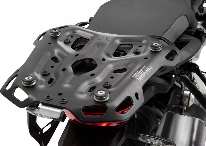 Extremely Robust Rack for Long Tours and Off-Road Rides, Exclusive Manufacturing Processes and Its Optimized Shape Lend An Extra Dose of Stability to the Rack, ITS Extreme Durability During Vibrations, Impacts and High Weight Was Tested In The Lab and Off-Road during HARSHEST CONDIT Cases. Sysbag with adapter plate are available separately with the appropriate adapter kit, offers adapter kits for attaching top cases from givi, krauser and shad, easy rigging of luggage on numerous, large lashing eyes, threading of 25 mm fasteners (Width: 32.9 cm at the front, 22.5 cm at the back, Length: 30.3 cm), easy installation on original attachment points with bike-specific attachment elements