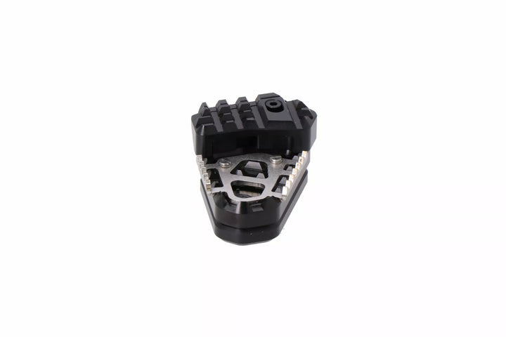 The Extension for Brake Pedal is Ideal for Off-Roading: It Enhances The Original Brake Arm Treat and Guarantees A Safe, controlled use of the brake. , When Standing, The Angle of Your Knee Changes, So Your Foot Cannot Put As Much Pressure on the Smaller pedal. , The extension of husbands it possible for the contact surface to be both broader and higher., Thanks to the raised contact surface, your foot is angled more shals, so it can reach and control the brake arm more easy, even when standing. , That Means the Extension for Brake Pedal Offers Better Safety and Better Control Over the Realar Brake., When Off-Roading, You Often Alternate Between Seated and Standing Positions. , In Addition to the Raised Surface, The Extension for Brake Pedal Features a Widacts Surface. , This is equipped with a ridged Surface, so it offers improved grip when the arm Surface is dirty or wet., Enhances the original Brake Pedal, Raised and wider Surface, Improved Grip Thanks to Ridged Surface ヨ Even Surfae Vet and Dirty