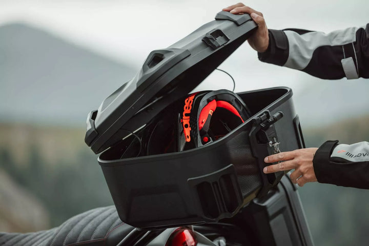 Rugged and Waterproof Case, Can Be Used As Side Case and Top Case, Fits One Helmet, Easy Mounting on Pro Side Carrier or Rack, Construction of Thermoformed Structured 3mm Thick ABS PLASTIC SHELLS AND AN ALUMINUM FRAMT Side with Integrated Lashing Options, Integrated Carrying Handles, Size: 48.6 x 41.3 x 29.5 cm / 19.1 x 16.3 x 11.6 in, Total Weight: Appr. 4.1 kg / appr. 8.9 lb