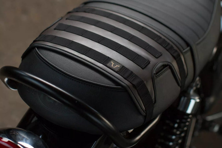 The LC1 / LC2 Side Bags Combine Classic Appearance and Contemporary action. These bags are easy to attach and detach on the slc side bag carrier using a quick lid system., Durable Napalon Synthetic Leather and Waxed Canvas Fabric Underline The Elaborate Vintage Design of the Legend Gear Soft Luggage. The LC1/LC2 SIDE BAGS AVAILABLE IN BLACK-BROWN OR A SOLID Black Version., Bike-Specific Development of the SLC SIDE Carrier for Best Fit