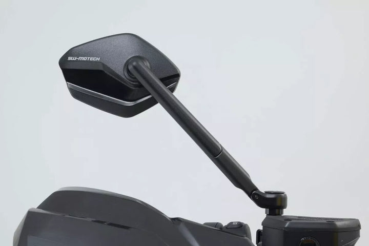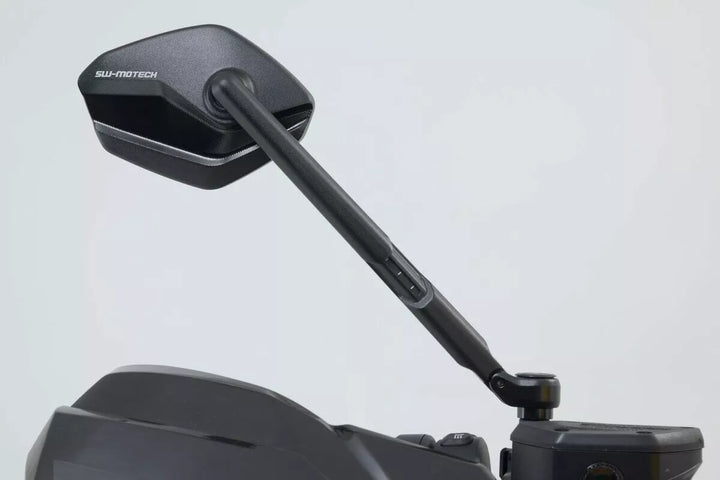 SW-Motech Manufactures The Adjustable Mirrors In A Modern and Flat Design From High-Quality Forged and Black Anodised Aluminum. , The Mirror Arms Consist of Continuously Adjustable Elements and Can Each Be Extended by 30 Millimetres. This Allows the Height and Length of the Mirrors to Be Adjusted to the Requirements of the Respective Pilot., This Sport Mirror Set has a long mirror arm. Mirror Arm Length: 182 mm., Modern and Flat Edge Design., Partial Areas and Functional Surfaces milled., 4 Different Adjustment Possibens for Best Possible Alignment., Stepless Rotation and Includes of the Mirror Arm. Mounting on Existing Mirror Connection., Scope of Delivery: 1 x Mirror Set Sport, 1 x Mounting Material for Mirror Set & Mounting Instructions.