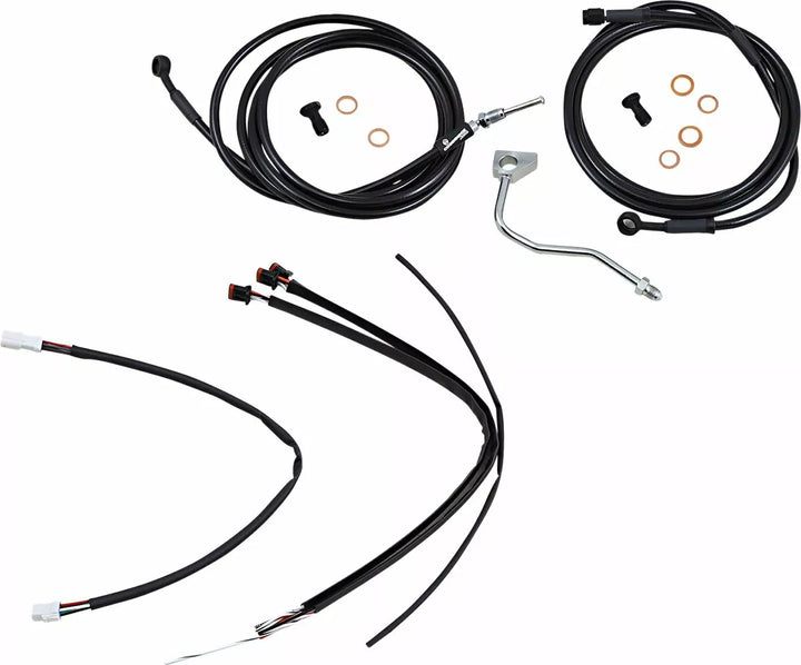 Kompletná inštalačná súprava pre vešiaky na burly opice, súprava obsahuje predĺženú brzdovú linku (pokiaľ nie je uvedená), predĺžená spojovacia čiara/spojka, predĺžená škrtiaca klapky/nečinné káble podľa potreby a všetky nevyhnutné zapojenie, vnútorné linky brzdy, whhen v cene, Felemudd, Outer Braid, Dobresser Stock Stock-By-Wire Byire, Kit, je založená na použití 2 „stúpacích zvukov s APE-Style-Style.