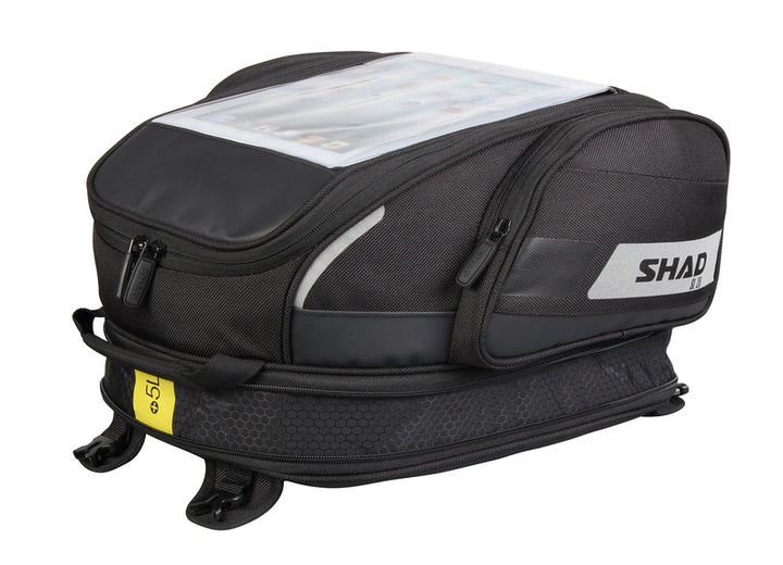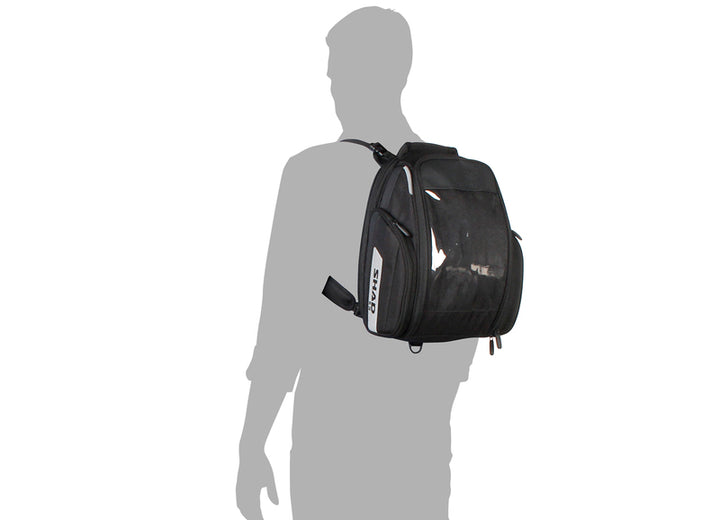 Rozbaliteľná taška na tank s reflexnými prvkami na zvýšenie bezpečnosti. S horným priestorom pre mapy, tablety, GPS, s dotykovou obrazovkou. Fixácia motocyklov cez popruhy pripevnené k bicyklom rámu a riadidlá (vkladané). • Zips s odolnými sťahovačmi vhodnými na použitie s rukavicami. • Vodotesná dažďová pokrývka. Kapacita pre prilbu prúdu. O Voliteľné: 4 Odnímateľné magnety + bezpečnostný remienok na riadidlá (ref. X1SL11) o Voliteľné: Universal Tank Base (Ref. X1SL90) • Káblové výstupy na prenos nabíjačky USB. Farba: čierna hĺbka (cm): 40 výška (cm): 18 Kapacita prilby: 1,0 kapacita batožiny (L): 15/20L Typ batožiny: Mäkký materiál: textilný odolný voči poveternostným vplyvom: vodotesná šírka (CM): 30.0