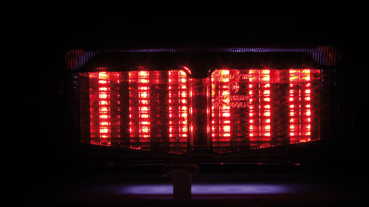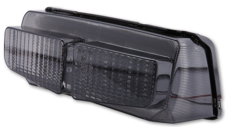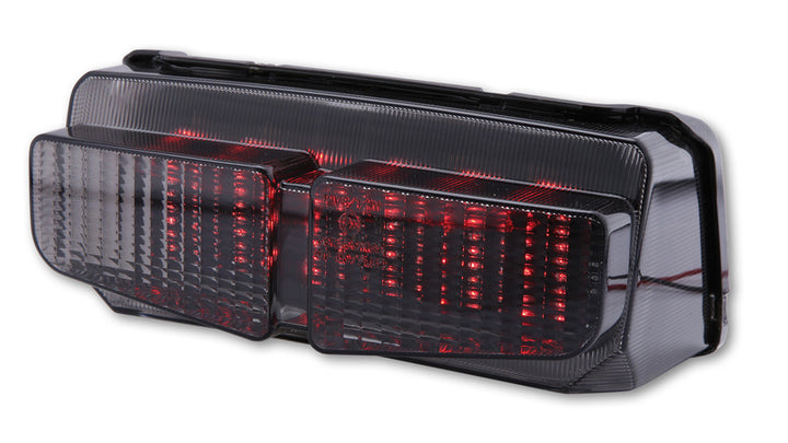 Kombinácia zadného svetla / brzdového svetla LED s tónovaným sklom, E-schválená, s osvetlením poznávacej značky. FITS YAMAHA FZ 600 až 03 TASPECIFICKÉ TASPELTS Zodpovedá pôvodnému tvaru a sú jednoducho namontované na pôvodnom držiaku výmenou. Zväzok káblov zostáva nedotknutý.